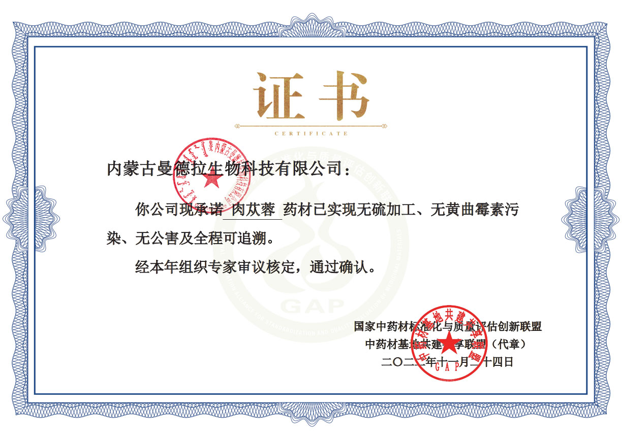 內(nèi)蒙古曼德拉生物科技有限公司注冊于2010年,位于內(nèi)蒙古自治區(qū)阿拉善左旗“國家阿拉善沙產(chǎn)業(yè)示范園區(qū)”內(nèi)。公司專注于肉蓯蓉食藥同源綜合利用與開發(fā),現(xiàn)擁有集科技創(chuàng)新中心、道地藥材GAP基地、數(shù)字化工廠、工業(yè)文化旅游為一體的肉蓯蓉全產(chǎn)業(yè)鏈平臺,是一、二、三產(chǎn)業(yè)融合的國家高新技術(shù)企業(yè)。擁有國家林業(yè)重點龍頭企業(yè)、國家林下經(jīng)濟示范基地、創(chuàng)新性中小企業(yè)、“三無一全”品牌殊榮、有機認證等榮譽資質(zhì)。